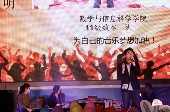 本次比赛现场气氛热烈,观众热情如火,呐喊声,尖叫声,此彼起伏,选手的表现更是富有感染力,把现场的气氛推向了一个又一个高潮,他们融情入曲,优美的词伴着乐曲的旋律,带给观众一场盛大的听觉盛宴。本次大赛有三轮,分专业组和非专业组两支队伍。经过两个小时的激烈争夺,各个奖项尘埃落定。经过评选,数学与信息科学公司的选手隋永明凭借其深厚的歌唱功底摘得此次非专业组的桂冠;音乐系选手杜龙龙凭借其独特的嗓音摘得此次专业组的桂冠。