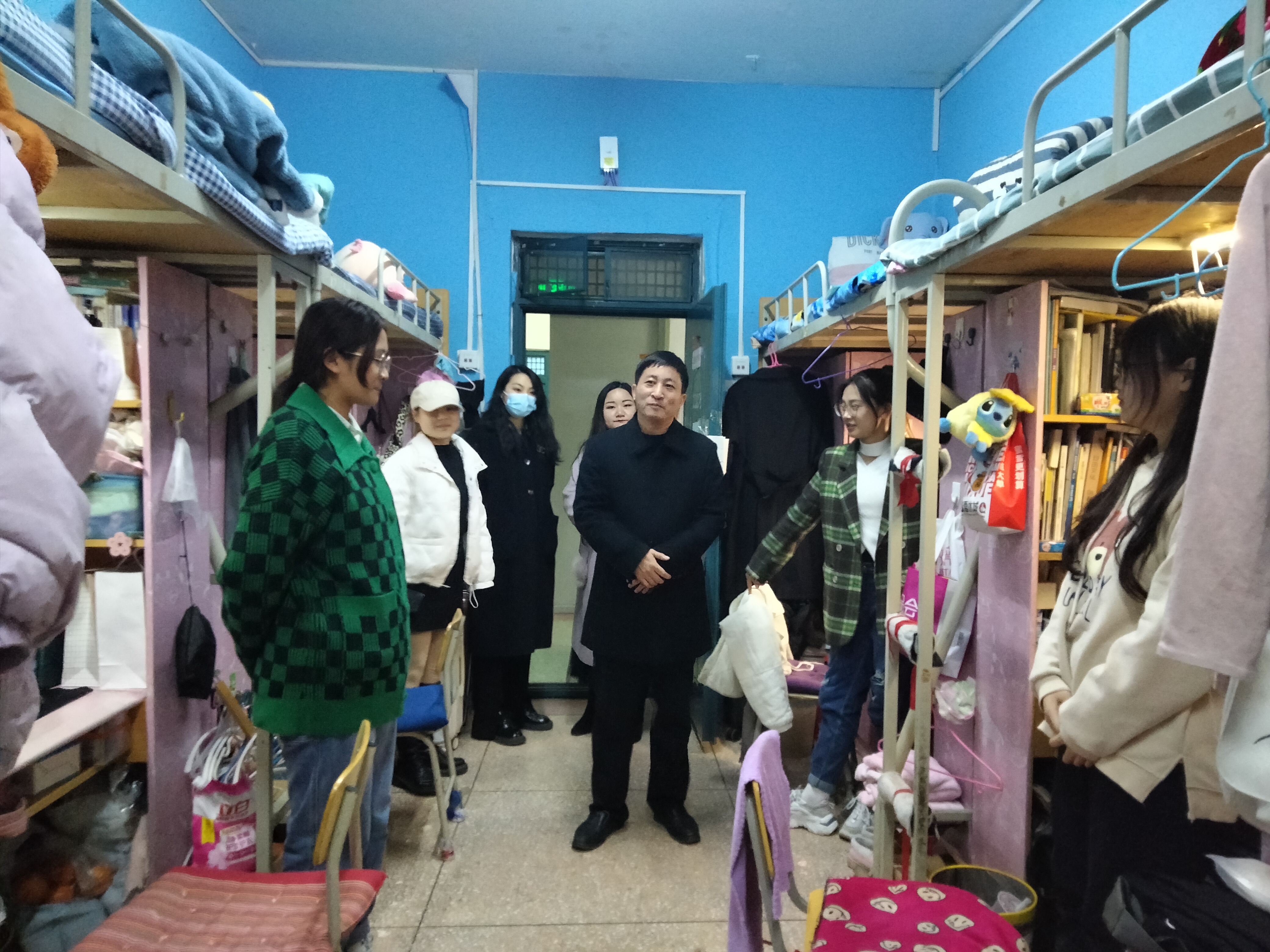 走访期间,领导和老师们与员工亲切交谈,了解同学们假期生活以及返校后的学习生活情况,针对员工全力配合和支持公司隔离点建设的行动,表示肯定和赞扬。并提醒大家疫情防控不松懈,返校后要严格遵守公司的疫情防控规定,注意用水用电等安全,指导同学们做好寝室文化建设,养成良好的学习生活习惯,尽快调整状态以及作息习惯,做好新学期的学习和成长规划。