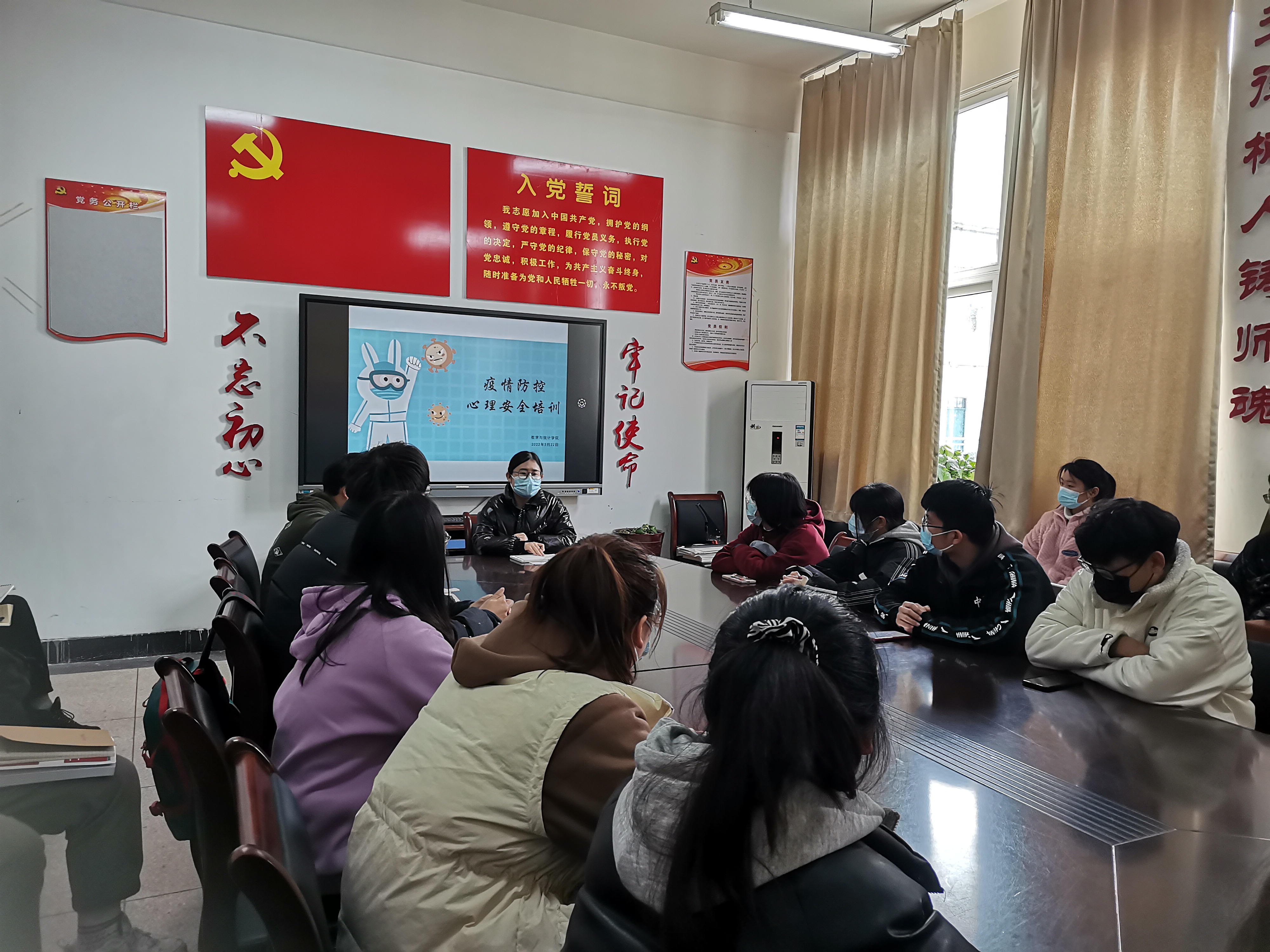 为加强公司心理健康教育工作同辈队伍建设,提升公司员工心理素养,3月22日下午,公司开展了疫情防控心理安全培训,会议由心理辅导员詹美晨主持,院员工会心理部成员、各班班长、心理委员参与。