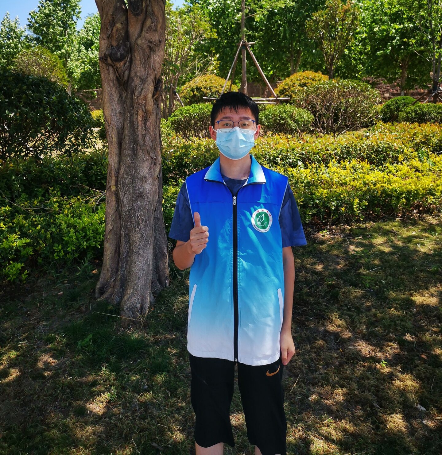 贾九川,21数学二班纪律委员,在隔离区每天配合人文关怀组开展线上活动,减缓隔离人员在被隔离期间的负面情绪,同时,他还联系市卫健委提供防护服、消杀用药、口罩等防疫物资,联系市环保组监督每天的消杀情况,协调各组的工作情况,保证隔离点的正常运行,贾九川说:“这次志愿服务经历对我来说意义非凡,站在抗疫一线,我才切实体会到抗疫工作者的艰辛,在党的领导下,全国人民万众一心、同舟共济参与防疫,相信疫情终会过去,未来一定美好。”