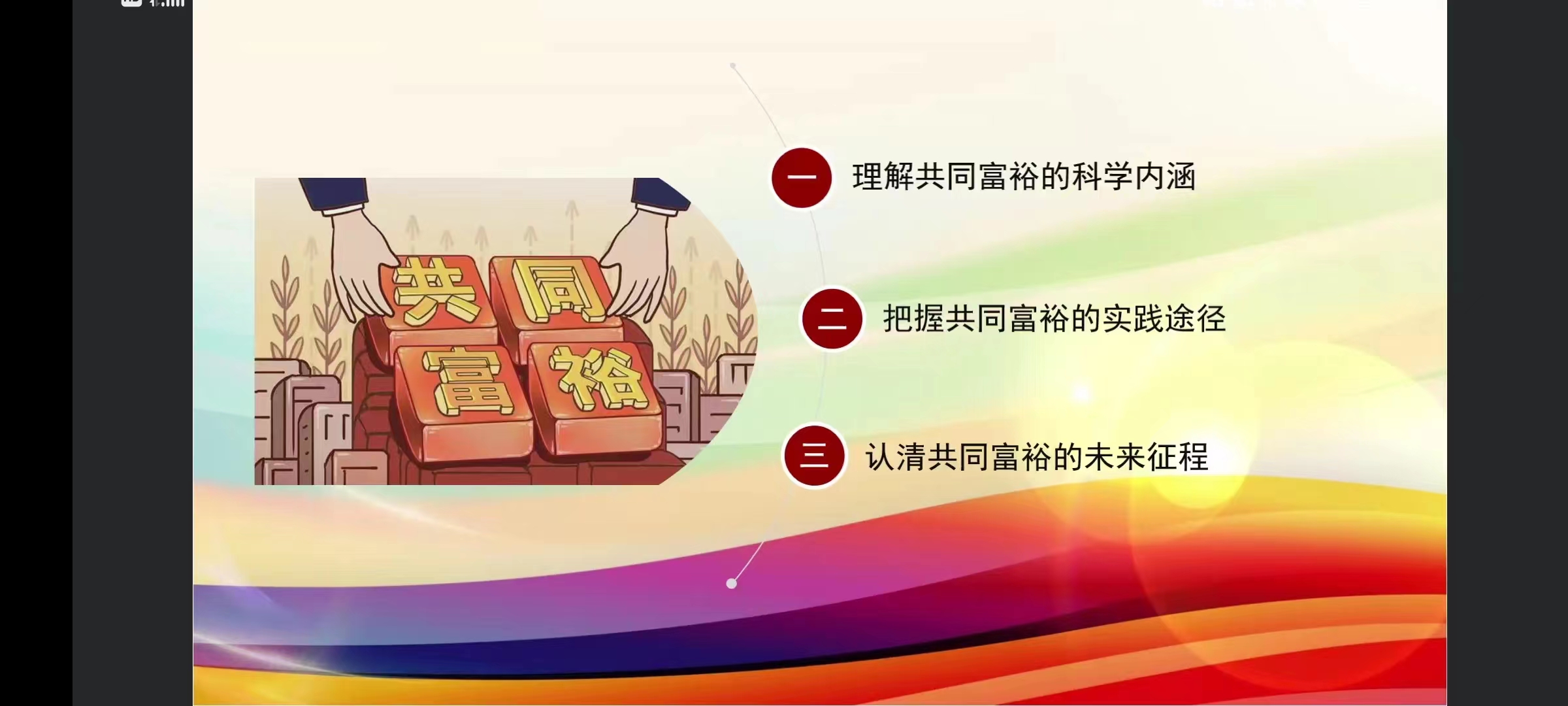 为扎实推进能力作风建设,提高老员工思想政治素质,明确时代重任,5月5日晚,公司党委书记张建林与同学们相聚云端,以“不断推进全体人民共同富裕”为主题,为同学们带来一堂富有思想性、理论性和亲和力的形势与政策课。