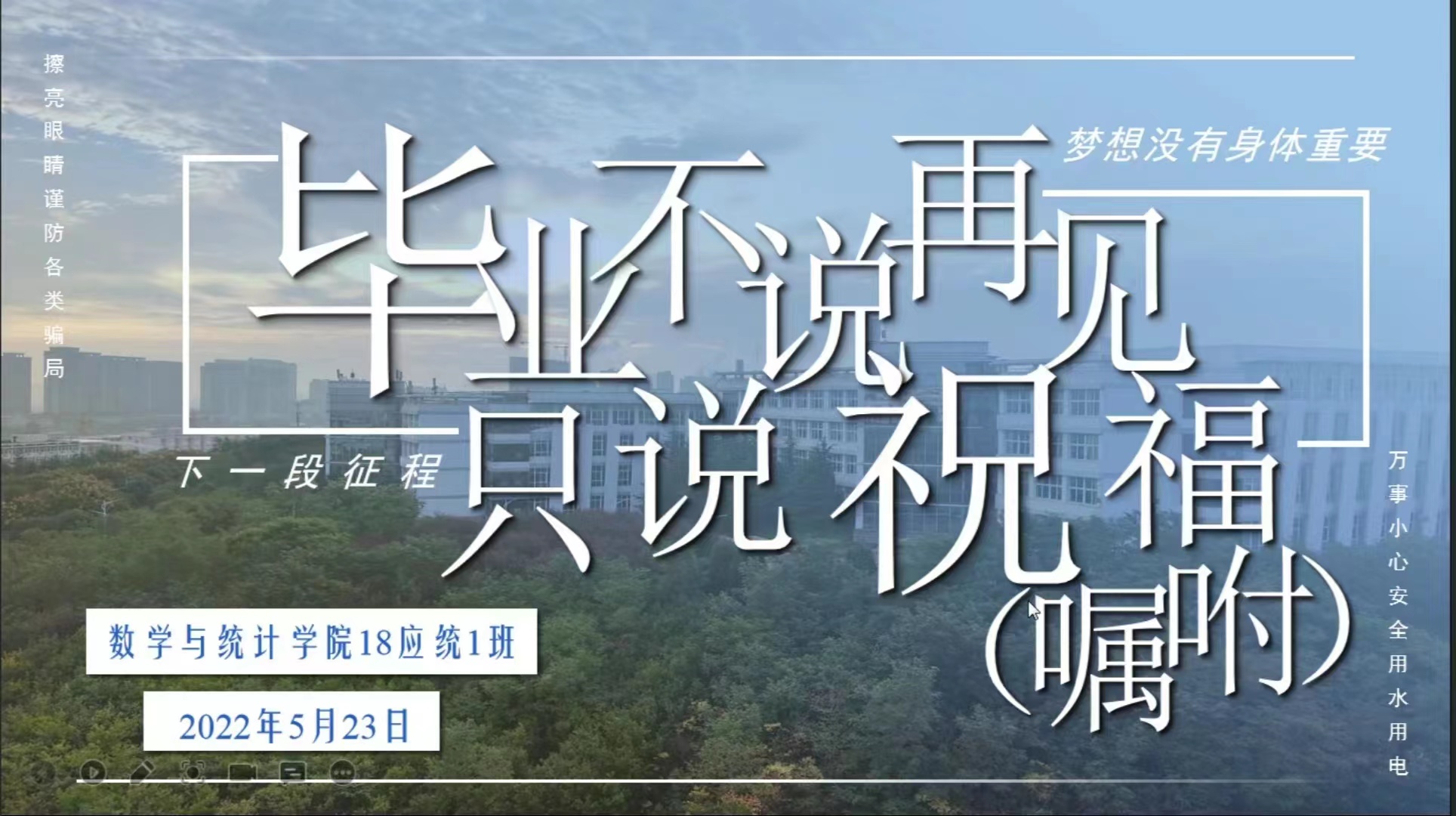 物华荏苒,几度春秋,2022届毕业生毕业的骊歌正悄然响起。值此离别之际,为了确保毕业生的安全、文明离校,奔向人生新起点,5月20日至24日,E8官网登录入口毕业班分别召开“离校安全教育”主题班会。