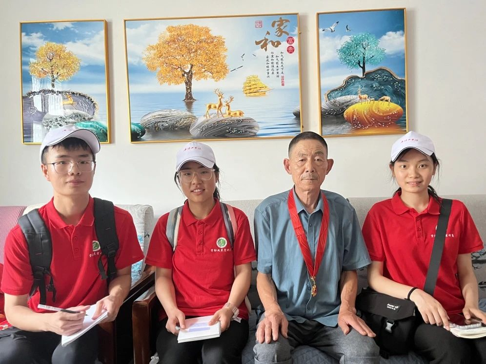 志愿者们分别拜访了李小欣、李振清、叶向阳三位党员,党员们向志愿者交流分享自己的入党经历和事迹。其中,李小欣同志在村两委任职期间,对本职工作兢兢业业,离任后,依然全力支持村两委各项工作;李振清同志说:“老了也需要严格遵守党的纪律,对党忠诚,不负人民。保持先进性、积极性以及对党的热爱。”与李振清同志的交谈中,志愿者近距离感受到了退伍老兵的精神和为人民服务的态度,坚定红色信仰,保持对党的热爱;叶向阳同志,则是中国千万乡村基层干部的缩影,坚持党的领导,脚踏实地做实事,为村民百姓排忧解难。三位党员身上,彰显着最诚挚的初心和不变的信仰,以实际行动诠释着什么是真正的忠诚和奉献,同时对青年力量寄予厚望。志愿者们在对话的过程中汲取红色力量,传承红色精神。