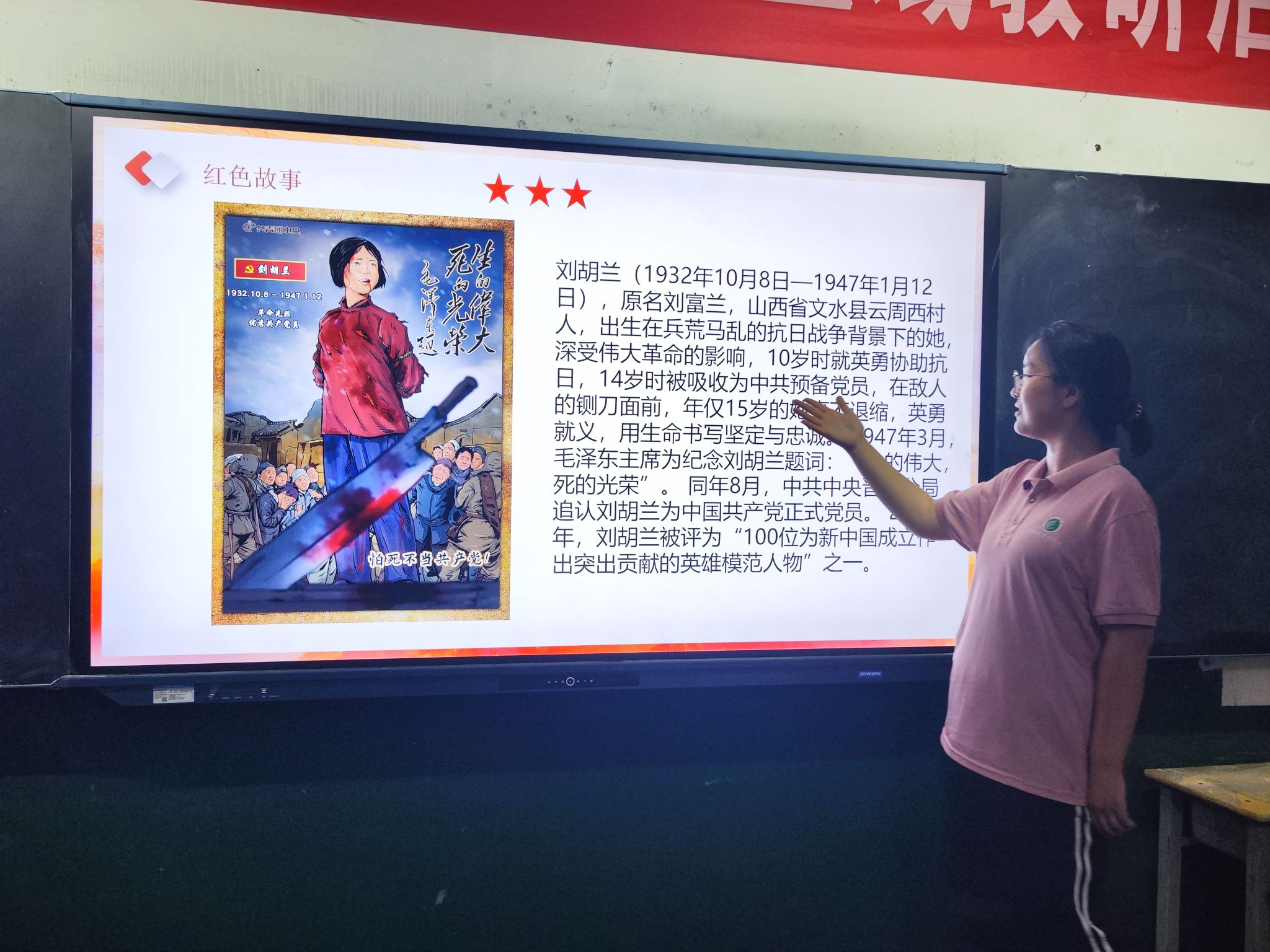 课堂上,志愿者向孩子们讲述了中国共产党团结带领全国各族人民不忘初心、牢记使命、艰苦奋斗的百年奋斗历程,激发孩子们的爱国情怀与奋斗精神。此外,志愿者通过PPT和视频向孩子们讲了刘胡兰、黄继光、焦裕禄、雷锋等红色故事,以生动的语言和形象的画面,展现了先辈们的英勇事迹和感人故事。孩子们听得津津有味,仿佛置身于那个热血年代。这些故事激励着孩子们努力学习,立志成为实现中华民族伟大复兴的先锋力量。