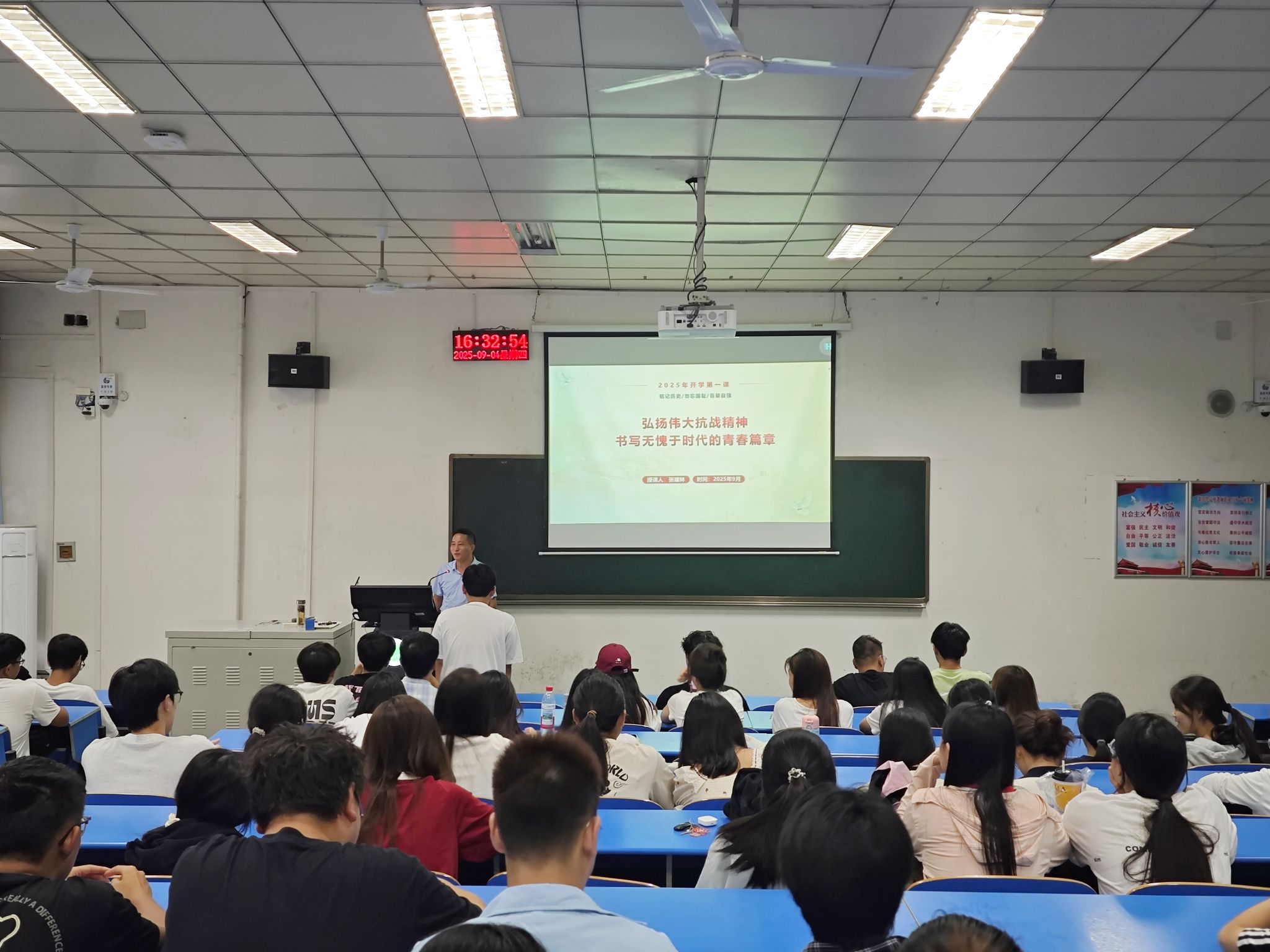 9月4日,公司党委书记张建林为同学们讲授开学第一课。本次讲座以“弘扬伟大抗战精神,书写无愧于时代的青春篇章”为主题,同时围绕校园安全以及防诈骗教育等多个方面展开讲解,为同学们在新学期的学习与生活筑牢思想根基和安全防线。
