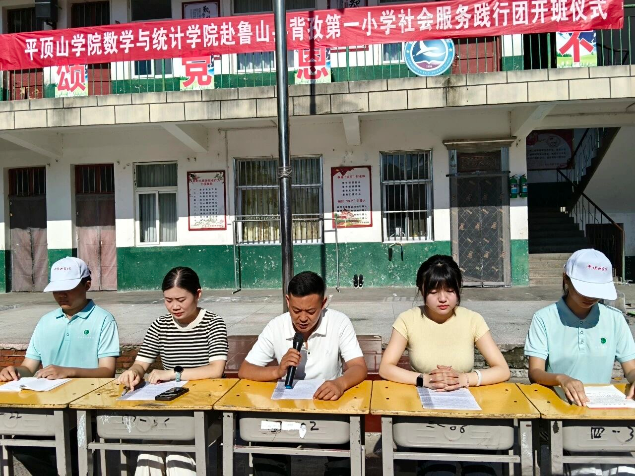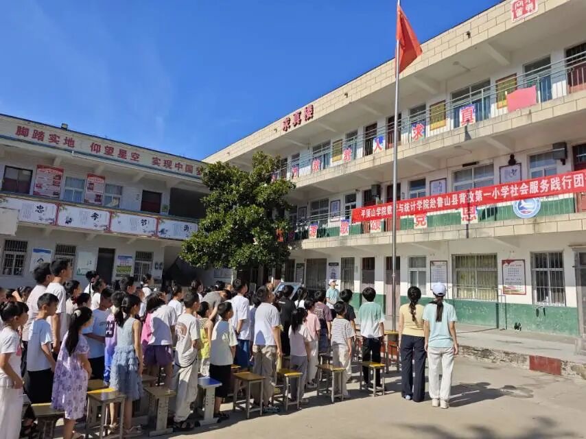 7月3日,E8官网登录入口"数绘仲夏,携手助学"社会服务践行团开班仪式在鲁山县背孜第一小学举行,第一小学董事长闫良各,践行团带队老师詹美晨、郑梦园,全体志愿者及七十余名员工与家长参加,仪式由带队老师郑梦园主持。