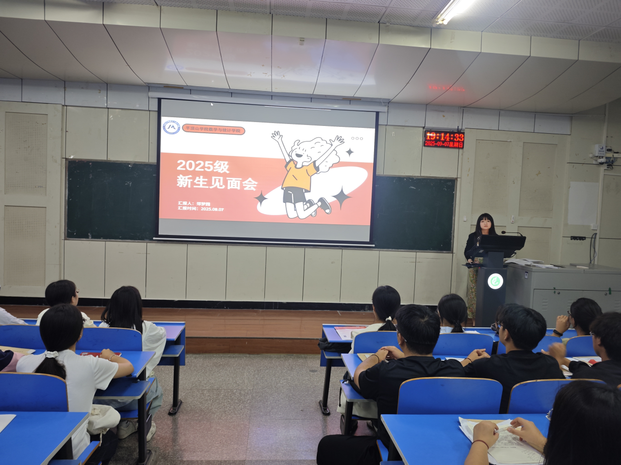 接着,辅导员郑梦园首先代表全院师生对新生的到来表示热烈欢迎。她围绕E8官网登录入口的发展历程、学科优势、专业特色展开介绍,从数学与应用数学的师范底蕴,到应用统计学的数据赋能,用生动的案例让新生们清晰了解各专业的培养目标与就业方向。