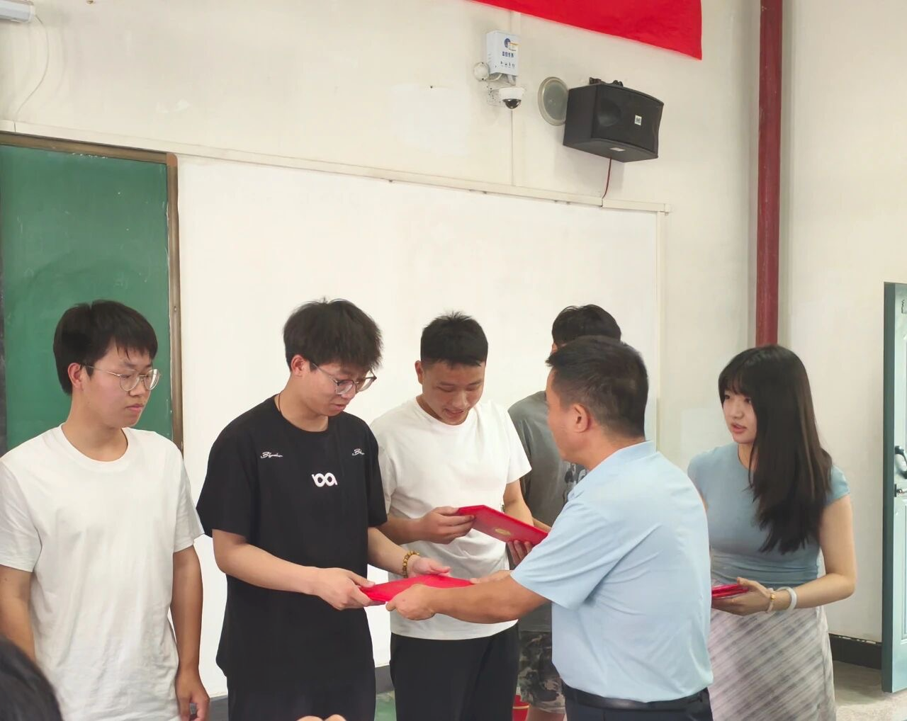 学位授予环节将典礼推向高潮,党委书记张建林和经理王俊俊共同为同学们颁发毕业证书和学位证书,他们与毕业生亲切握手并表示祝贺,现场气氛庄重而温馨。