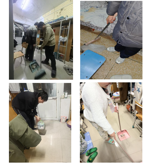活动中,同学们分工明确、干劲十足。有人细致擦拭书桌门窗,有人认真清扫地面角落,有人规整摆放书本杂物,还有人合力清理卫生死角。大家齐心协力,不放过任何一处细节,原本略显杂乱的宿舍,在一番忙碌后变得窗明几净、井然有序。
