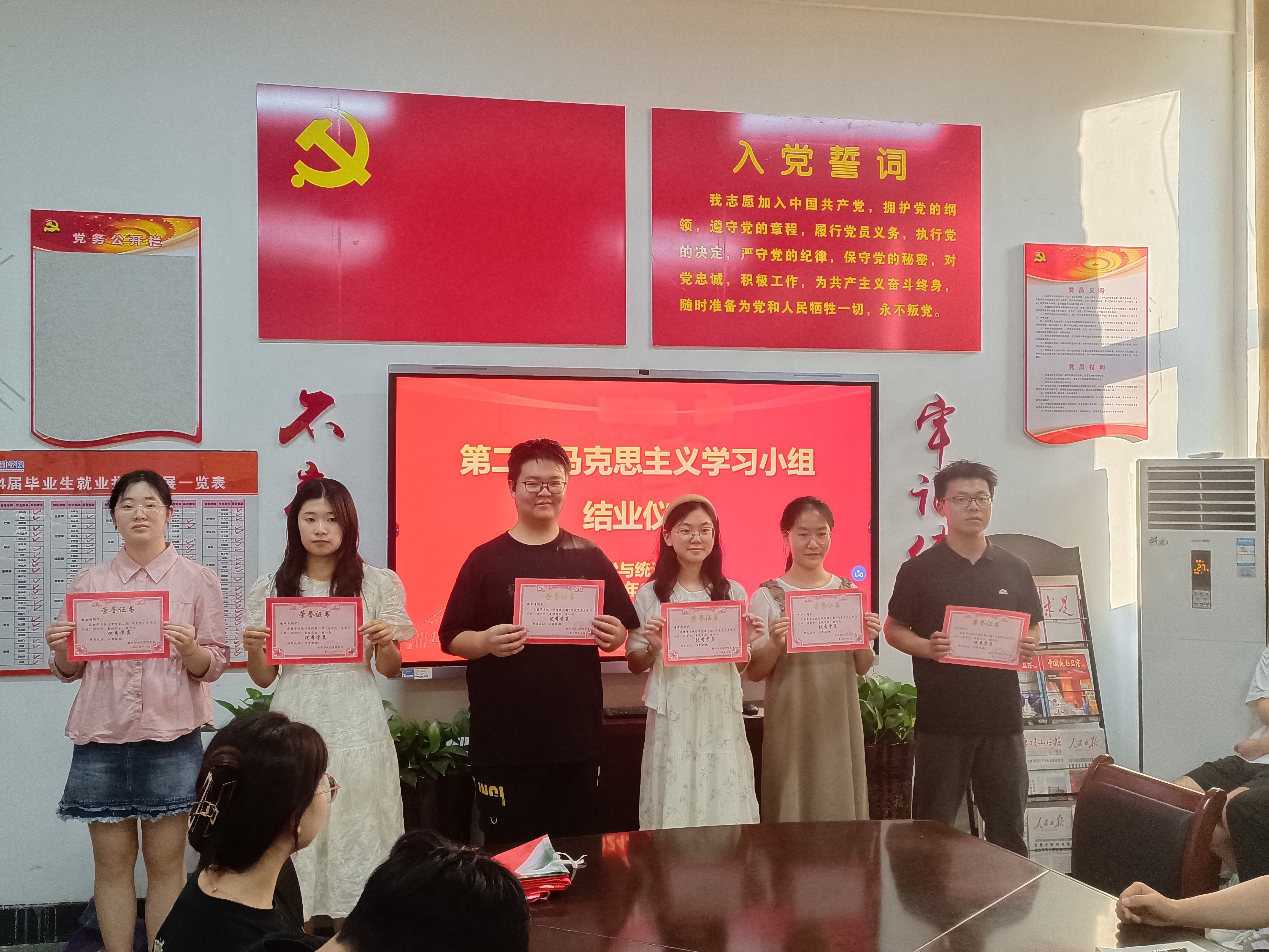 仪式伊始,耿老师宣读了第二期马克思主义学习小组优秀学员表彰名单并颁发荣誉证书。学习小组优秀学员代表王欣瑶、韩笑、李明昱依次分享自己的学习感悟。他们纷纷表示,马克思主义学习小组学习内容丰富,形式多样,使我们更深入走进了马克思主义。作为新时代的新青年,肩负着重大的历史使命和社会责任,应将个人的成长发展、理想抱负与国家的前途命运紧密相连,以更加昂扬的斗志和热情,投入到为社会和国家的奉献中去。