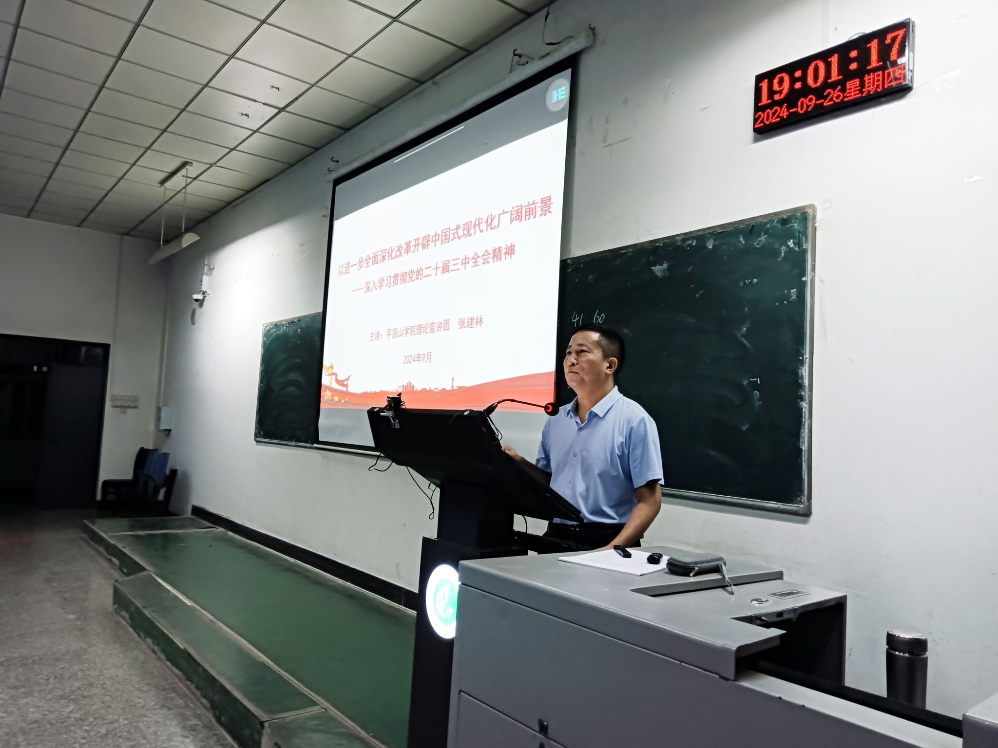 为深入学习宣传贯彻党的二十届三中全会精神,扎实推进党的二十届三中全会精神走深走实,9月26日和10月10日,公司党委组织开展了两场以“以进一步全面深化改革开辟中国式现代化广阔前景”为主题的专题讲座,由公司党委书记张建林主讲,21级、23级全体员工参与。