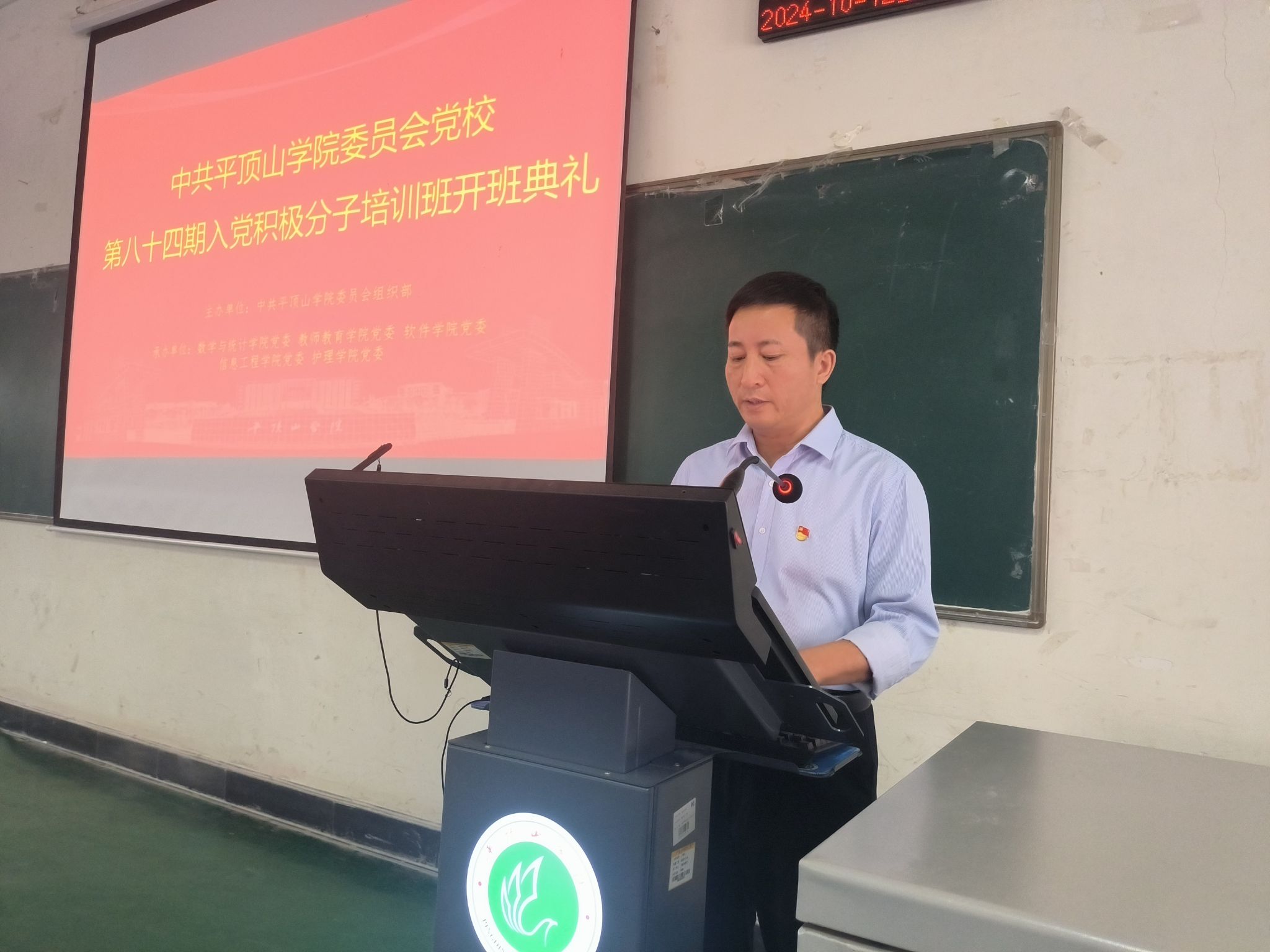 为进一步做好入党积极分子的培养、教育工作,加强党的路线、方针、政策和党的基本知识教育,提高党员发展质量。10月12日,公司党委于2406组织开展了平顶山公司党校第八十四期入党积极分子培训班开班仪式。仪式由公司党委书记张建林主持,公司党委组织部副部长李凯、公司党委副书记孙亚南、组织员暨培训班班主任耿梦媛、学工办主任李睿智、辅导员郑梦园,以及175名学员参加。