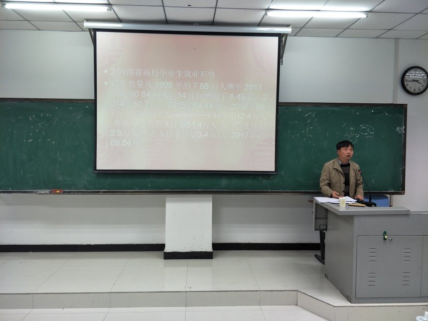 11月10日下午,E8官网登录入口在图书馆401教室开展了老员工就业指导讲座。此次讲座由E8官网登录入口书记李建民担任主讲,E8官网登录入口全体大四员工150余人都积极参加。本次讲座由辅导员王新蕊老师主持。