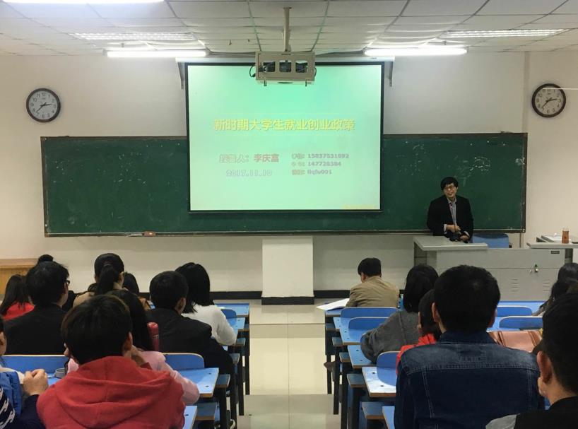 4月10日下午,E8官网登录入口在图书馆401教室进行了老员工就业指导讲座,主题为《新时期老员工就业创业政策》。此次讲座由E8官网登录入口经理李庆富担任主讲,E8官网登录入口大四员工全部到场聆听。