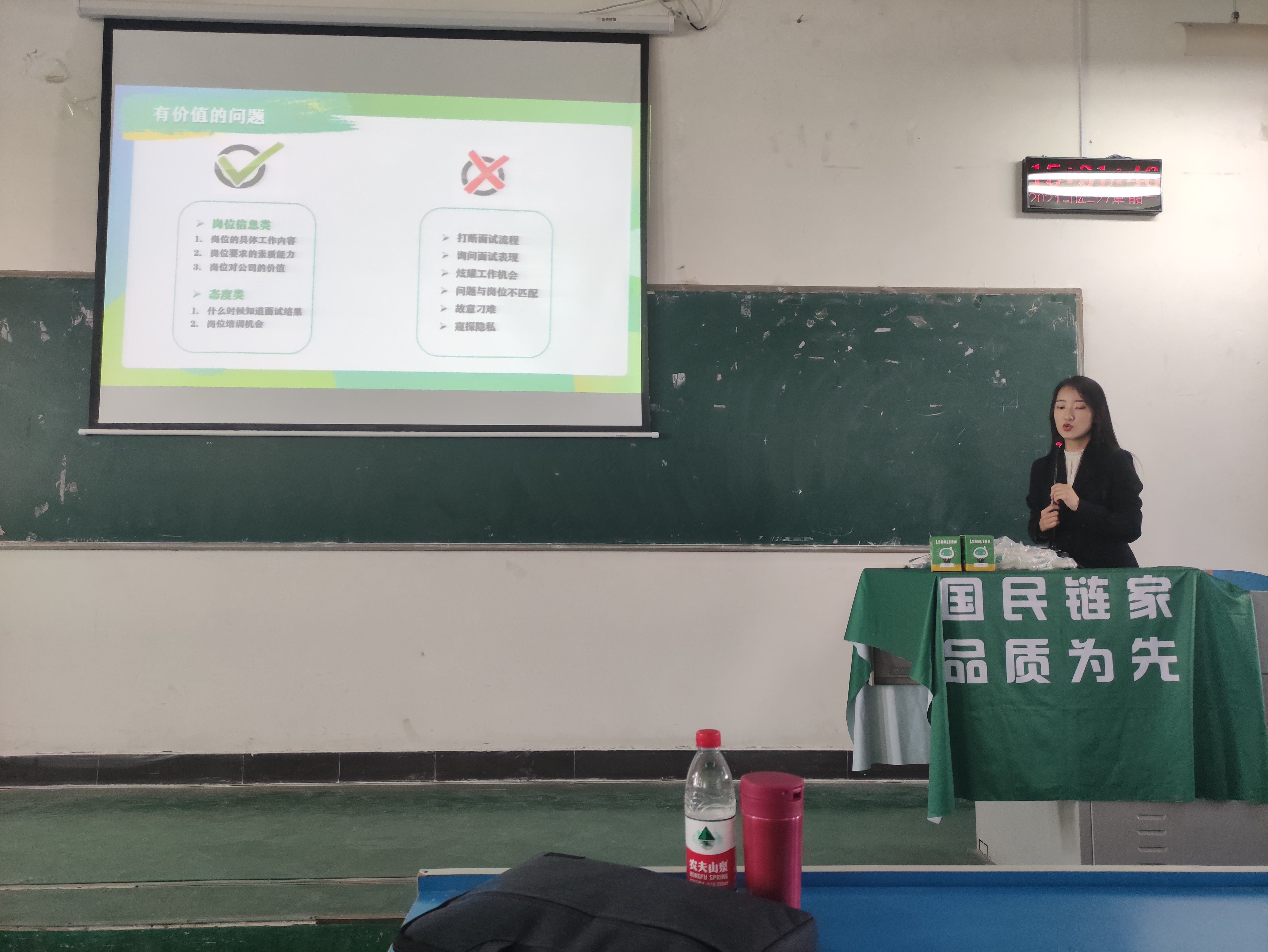 丁老师向同学们介绍公司情况和招聘要求,还分享了简历制作方法以及面试环节需要注意的问题等经验。站在HR的角度,向同学们介绍了面试官偏爱的简历类型以及在面试环节可能出现的问题等。为即将步入社会的广大莘莘学子提供可靠经验,有助于同学们在求职过程中从容应对。