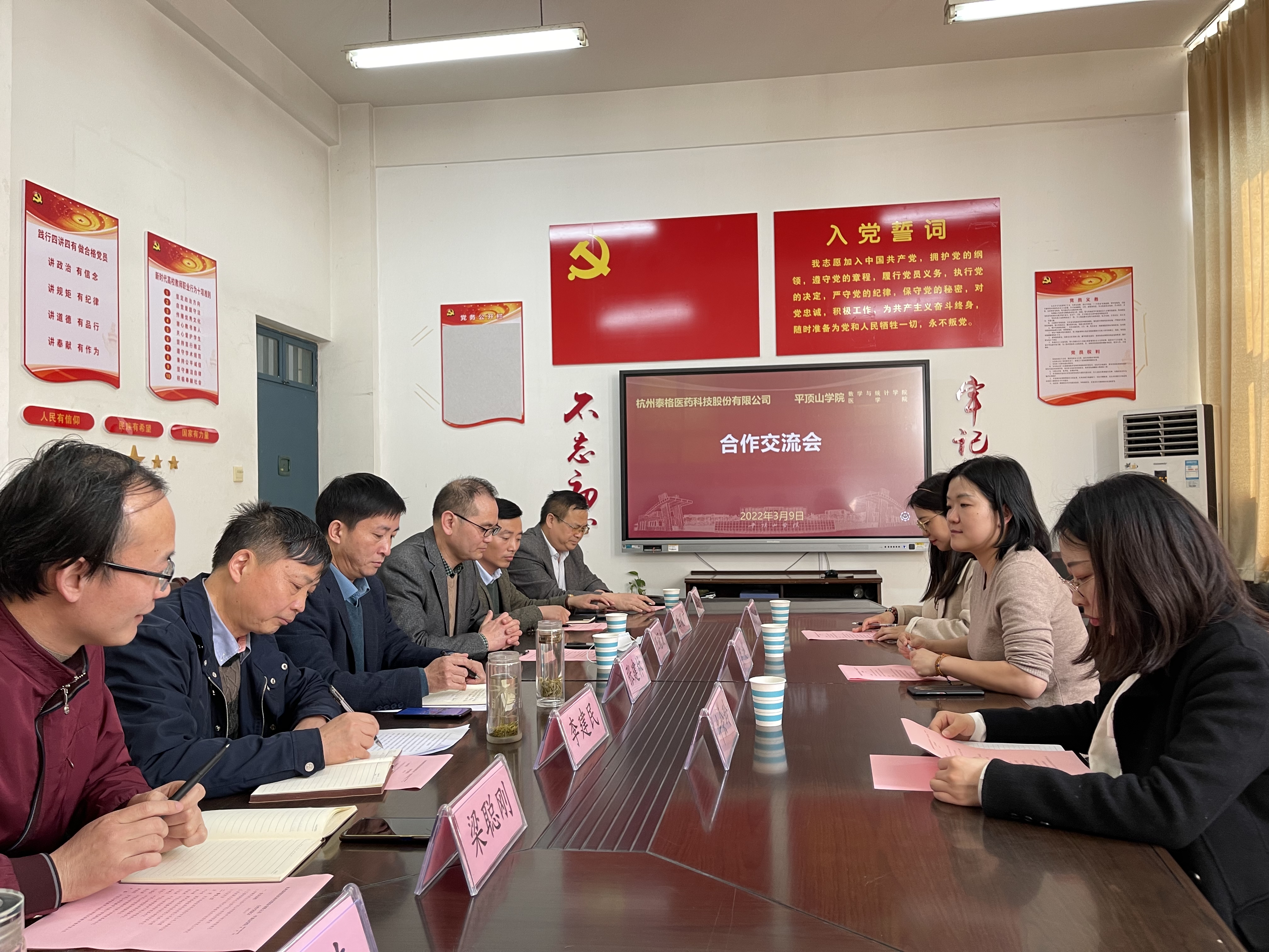 3月9日下午,E8官网登录入口在2317会议室举办了校企合作交流座谈会。公司领导班子成员及专业负责人、医公司党委书记王冠波、副书记白现广、副经理王福安到会,杭州泰格医药科技股份有限公司代表参加会议。