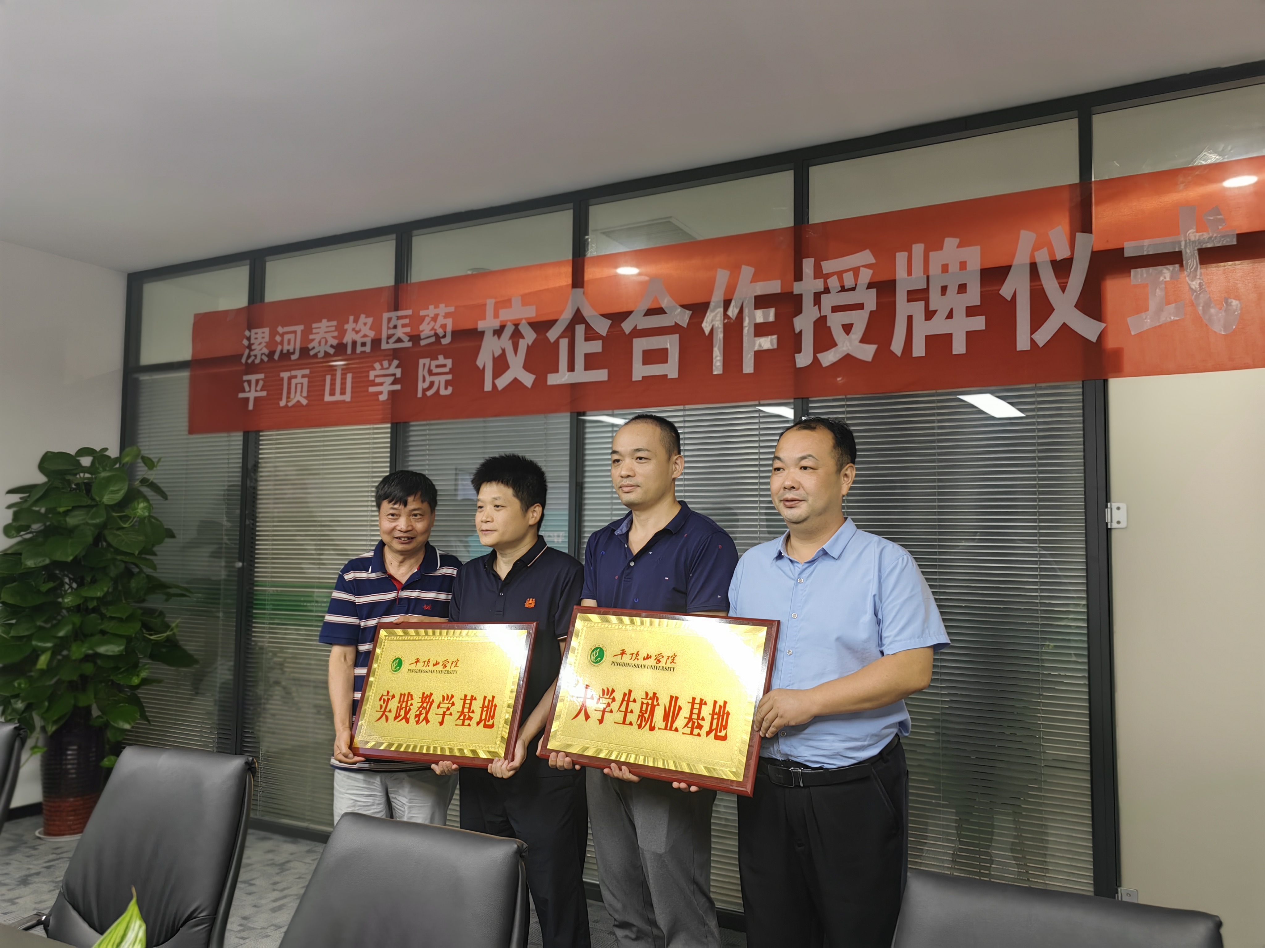 李建民与公司人才招聘处负责人赵伟杰一同向漯河泰格医药科技有限公司授牌“E8官网登录入口实践教学基地”“E8官网登录入口老员工就业基地”,标志着双方在专业建设、实习实训、人才培养、就业服务等多个方面建立深度合作关系。