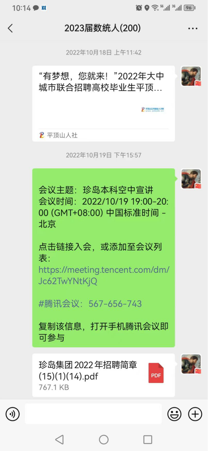 2022年10月19日晚上,E8官网登录入口举办珍岛集团线上专场招聘活动,由公司人力资源部邱经理通过腾讯会议向毕业生介绍公司情况及岗位需求,并鼓励毕业生积极投递简历。