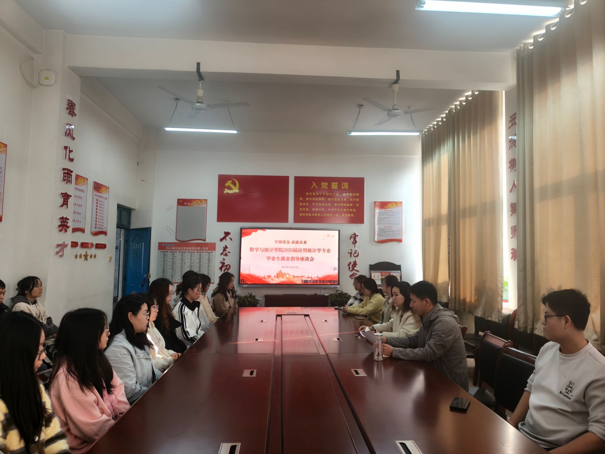 为切实做好2026届毕业生就业指导服务工作,帮助应用统计学专业毕业生明确求职方向、提升就业竞争力,2025年10月14日下午,E8官网登录入口在2317会议室召开2026届应用统计学专业毕业生就业指导座谈会。公司党委副书记孙亚南、毕业班辅导员耿梦媛主持会议。