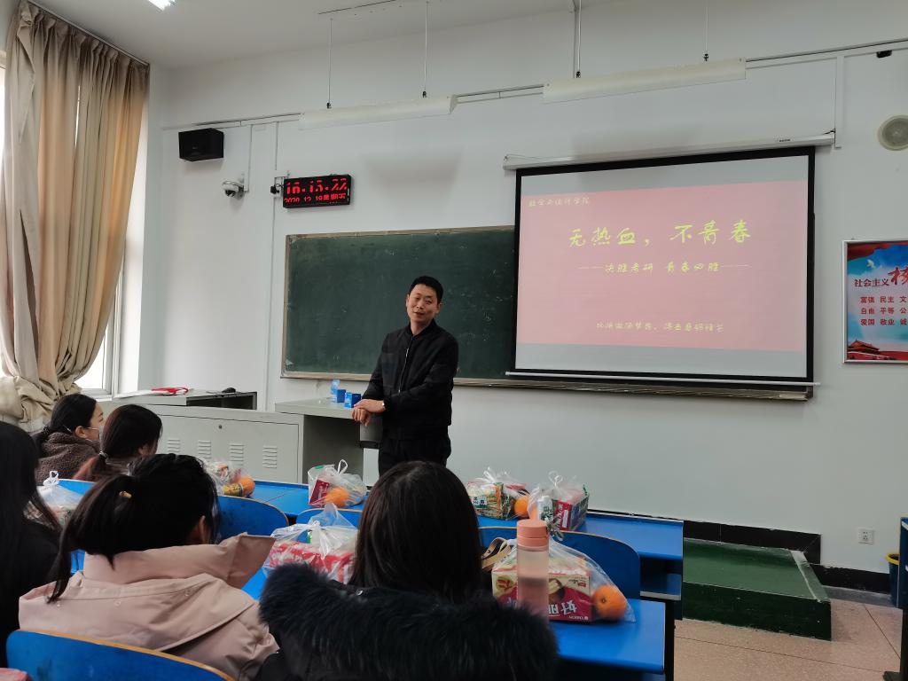 12月18日下午,公司在2110教室召开了2019届毕业生考研动员大会,公司党总支书记李建民,经理李庆富,党总支副书记梁聪刚,团总支书记李睿智,辅导员耿梦媛、詹美晨老师以及全体考研员工参加了此次活动。
