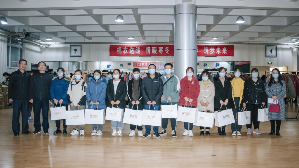 为弘扬中华民族“扶贫帮困、互助互济、奉献爱心”的传统美德,帮助家庭经济困难员工度过一个温暖的寒冬,12月10日下午,公司在体育馆T106教室举行2020年爱心棉衣发放活动。公司党总支副书记梁聪刚、辅导员耿梦媛老师带队,与受资助同学参加了本次发放活动。