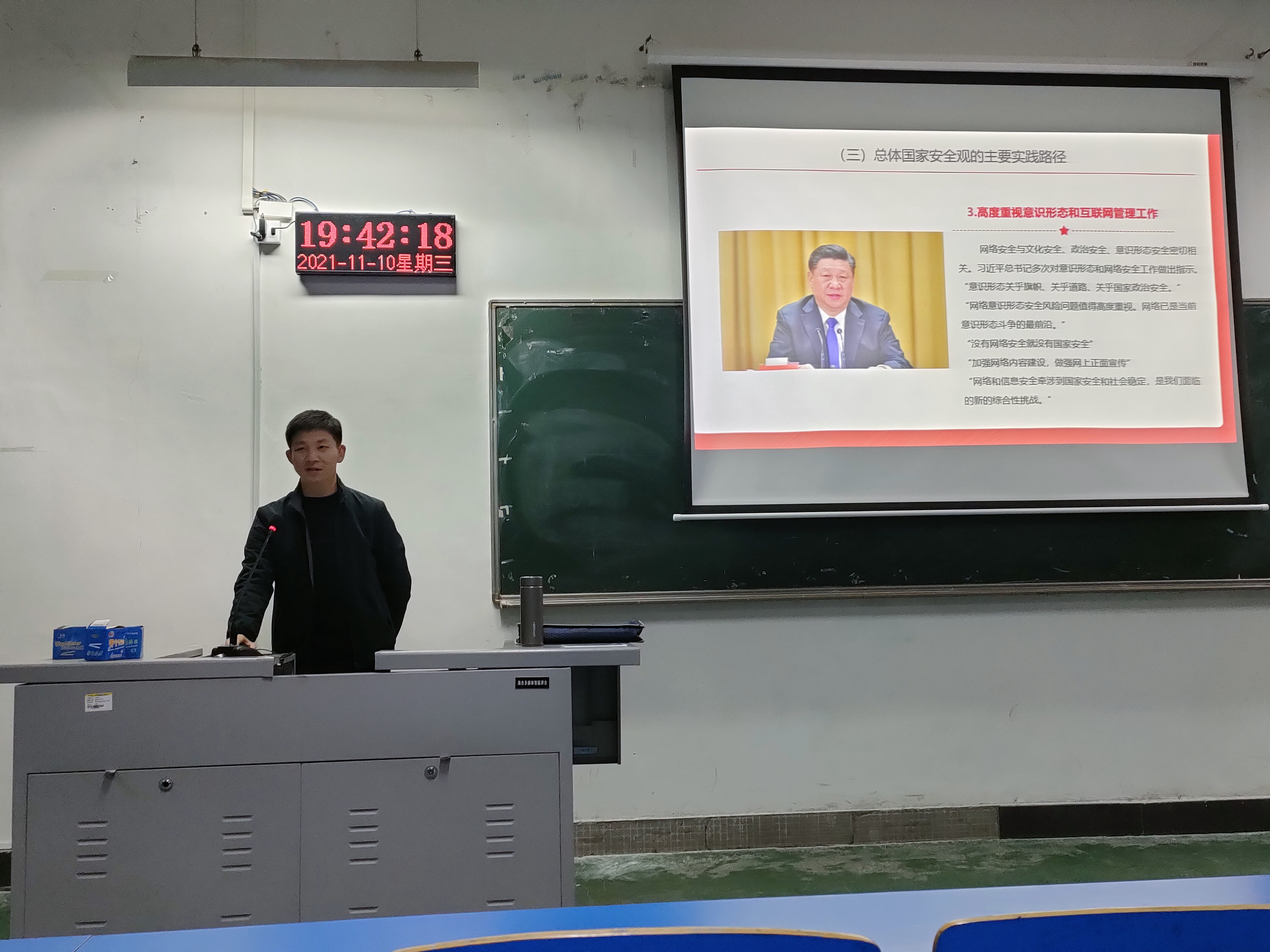 孙书记以“践行总体国家安全观,确保国家长治久安”为题,从树立总体国家安全观、维护国家经济安全、维护国家网络安全、维护我国周边安全、总体国家安全观的意义等方面,细致的分析了当前国家安全总体形势,介绍了国家安全工作的职能职责,引导全体同学要充分认识维护国家安全的重要性,切实增强国家安全防范意识与能力。讲座中孙书记也强调,同学们要时刻拧紧国家安全这根弦,加强对《中华人民共和国国家安全法》《中华人民共和国保守国家密法》等法律法规的学习,严格要求自己。最后,孙书记号召全体同学要全面贯彻落实总体国家安全观,牢固树立底线思维,自觉当好维护国家安全的忠诚卫士,以实际行动维护国家安全共筑中华民族伟大复兴梦。