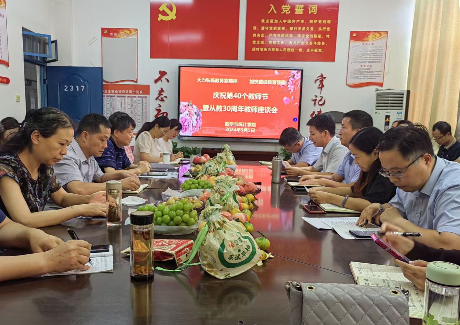 为大力弘扬和践行教育家精神,促使广大教师以更强烈的事业心和责任感投身教育事业,全力推动E8官网登录入口事业朝着更高质量方向阔步前进,在全国第40个教师节到来之际,E8官网登录入口于9月5日下午在2317会议室举行“庆祝第40个教师节暨从教30周年教师座谈会”,数统院全体教职工以及员工代表参加本次座谈会。