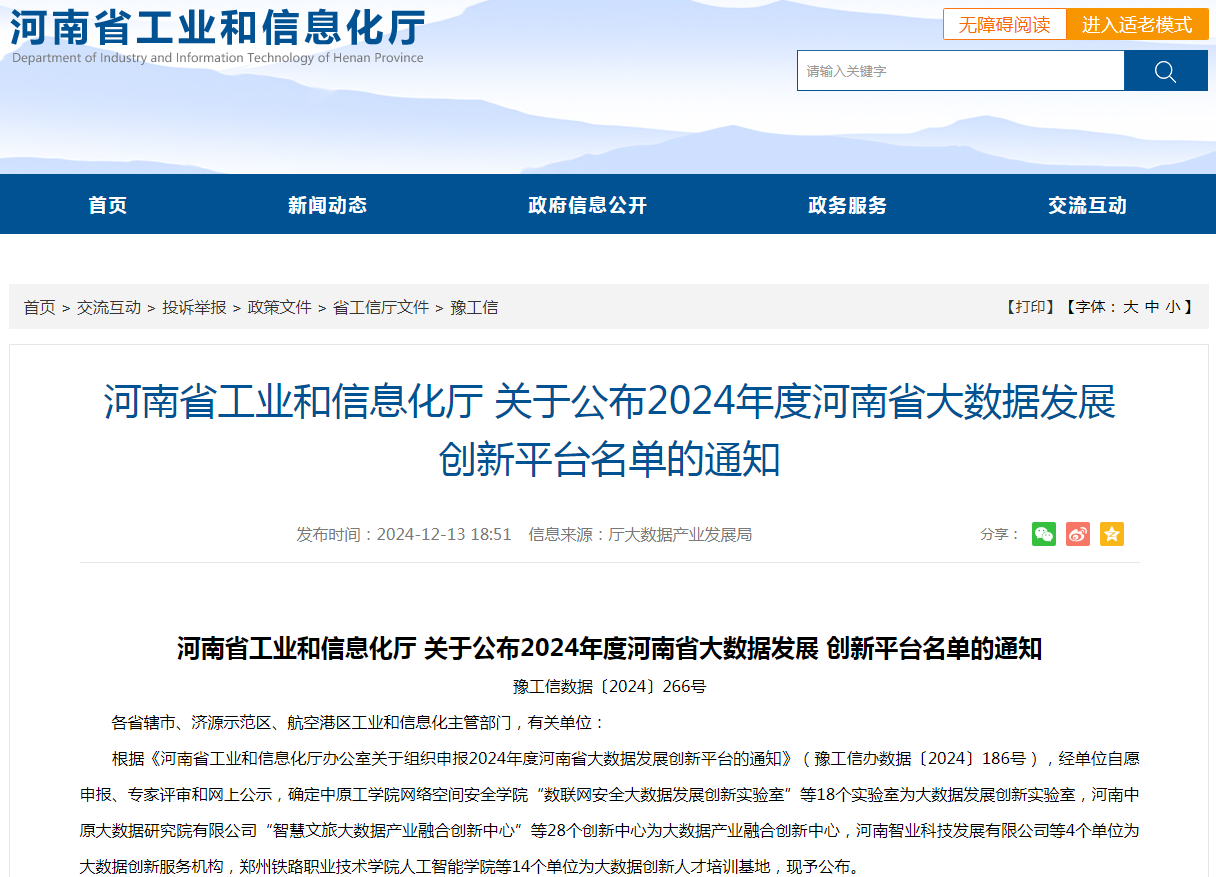 近日从河南省工业和信息化厅获悉,公司牵头申报的《智慧电力大数据产业融合创新中心》——河南省大数据发展创新平台获准立项建设,这是公司首个省级大数据发展创新平台(到2025年全省建成80个左右省级大数据产业融合创新中心)。