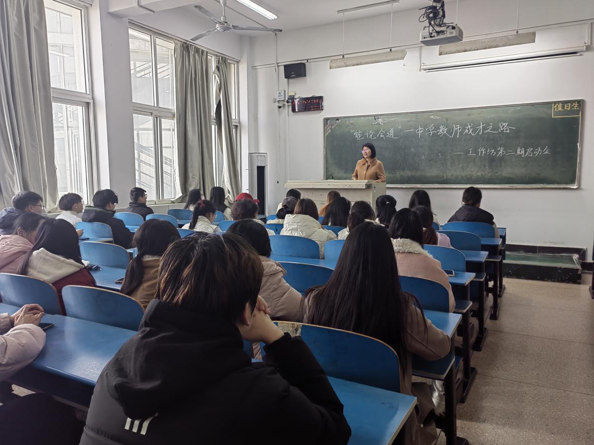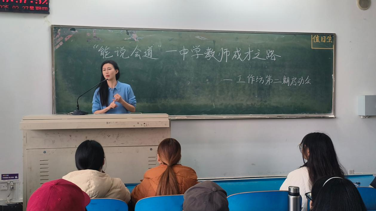班主任牛青围绕“能说会道”这个主题对工作坊师范生提出以下几点建议:第一,要尽快完成身份转换,时刻以一个中学教师的标准严格要求自己,在日常交流中要规范普通话和提升沟通能力;第二,要热爱教育工作,在学习生活中提升师德修养,厚植教育情怀,发挥职业育人特色,促进师范生科学规划职业生涯。