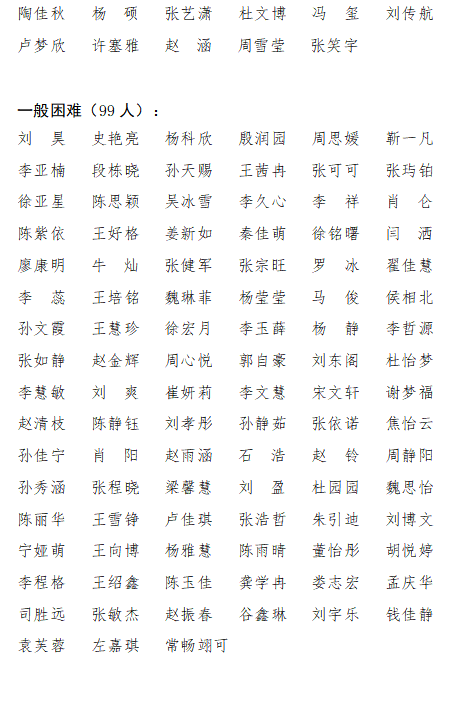 根据《E8官网登录入口关于做好2023-2024学年家庭经济困难员工认定工作的通知》,按照公司《E8官网登录入口家庭经济困难员工认定办法》,本着公平、公正、公开原则,经过员工申报、年级评议小组民主评议推荐、公司家庭经济困难认定工作领导小组审核研究等程序、环节,认定以下278名同学为2023-2024学年家庭经济困难员工,现将名单予以公示。如有异议,请在公示期内及时反映。