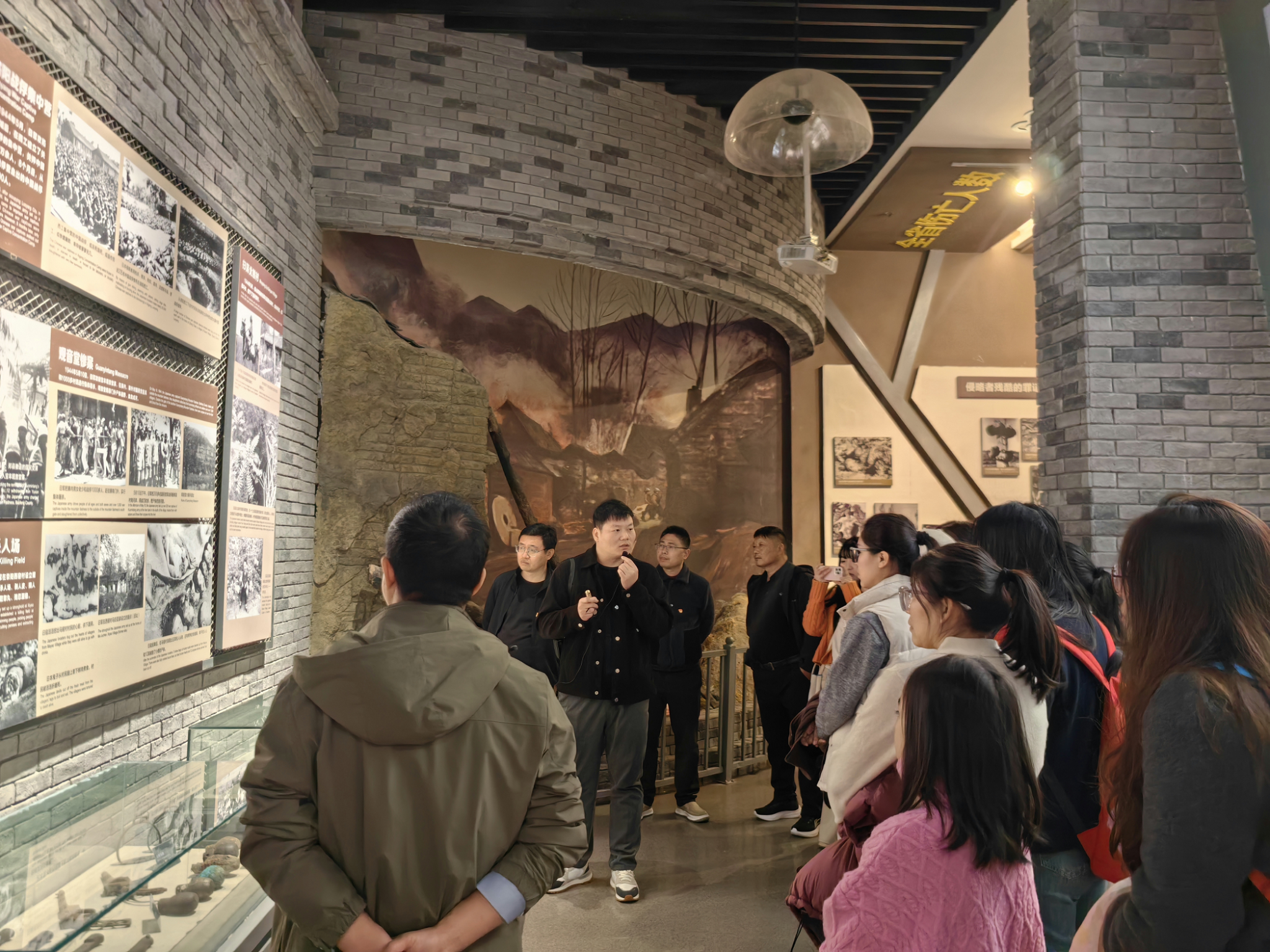 在纪念馆内主题壁画前,全体党员教师重温入党誓词,铮铮誓言不仅是对党的庄严承诺,更是对革命先辈们的深情告慰。在讲解员的带领下,同志们怀着崇敬与肃穆之情,依次参观了“豫西沦陷、挺进豫西、抗击日寇、红色曹沟、走向胜利、风云人物、情系豫西、铭记历史”等展区,以及原河南省第六专区党政军机关办公旧址和窑洞、炮楼、地道等历史遗迹,回顾豫西沦陷的艰难处境、八路军挺进豫西的英勇壮举以及创建抗日根据地的伟大历程,深刻感悟革命先烈不畏艰险、不怕牺牲的革命精神和共产党人永不褪色的初心使命。